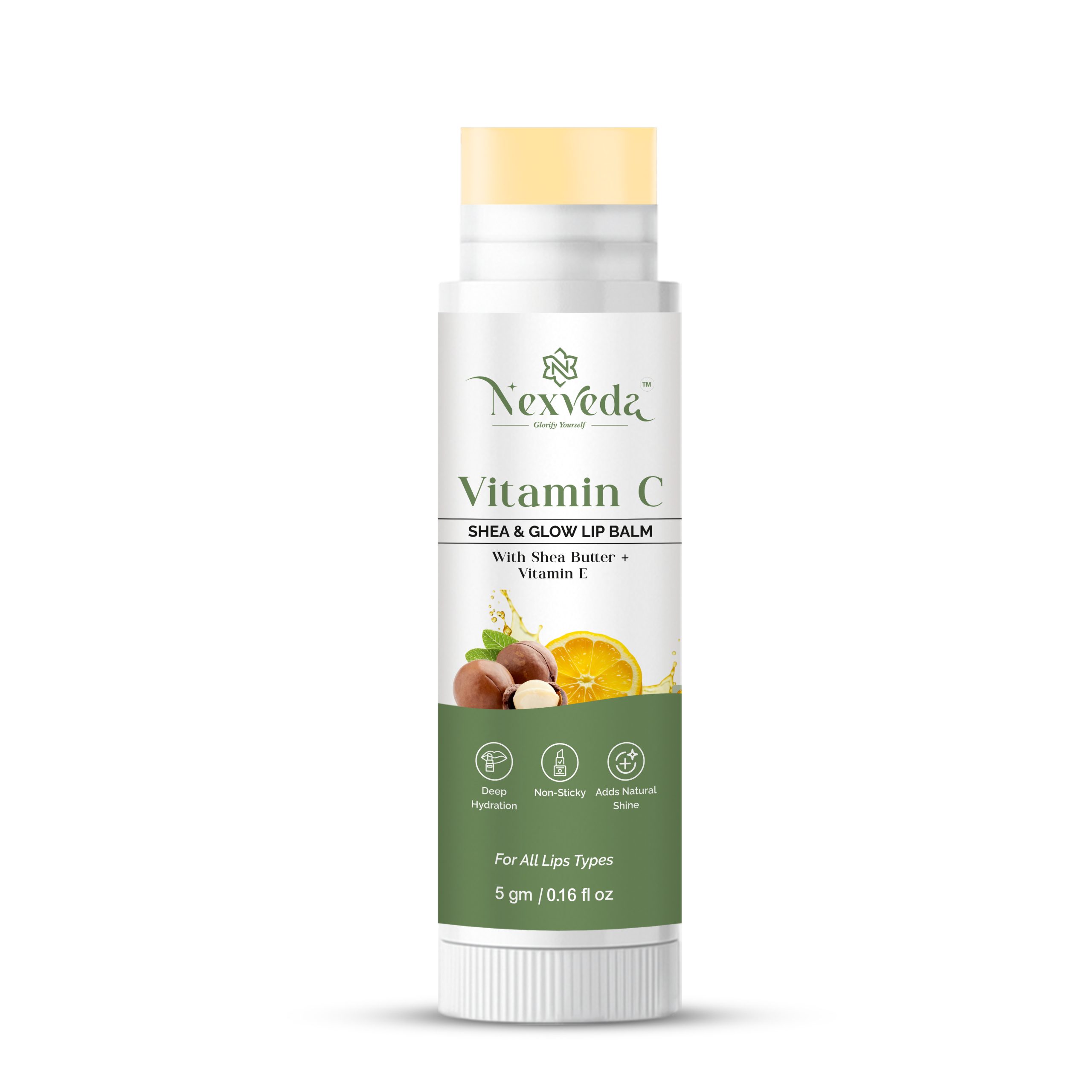 Vitamin C Shea & Glow Lip Balm focus on its core benefits of intense hydration, brightening effects, repair of chapped lips, and antioxidant protection.